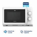 Con 20 litros de capacidad, este microondas monofunción es ideal para calentar y cocinar de manera rápida y eficiente. Su control mecánico por perillas permite un uso simple e intuitivo para toda la familia.