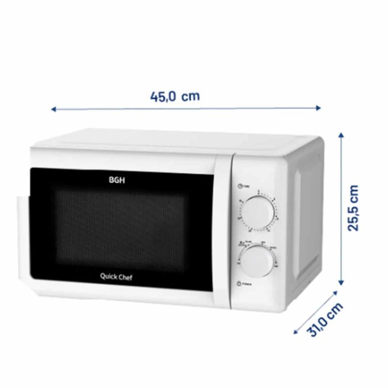 Este microondas cuenta con medidas internas de 275 mm de ancho y 305 mm de profundidad, asegurando un espacio óptimo para distintos tipos de recipientes.