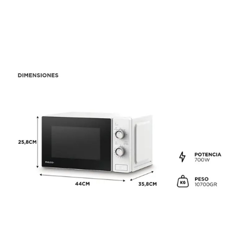 Microondas Rotativo Philco 20 Litros Blanco Mphrw20uap