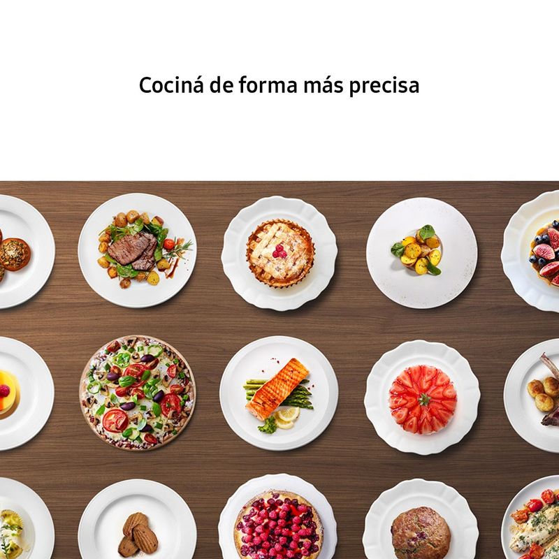 ociná platos deliciosos sin recetas ni tener que memorizar. Auto Cook ofrece varias opciones para los platos más comunes, como pollos y pasta. Cada uno está pre-programado con el modo, el tiempo y la temperatura óptima. Simplemente seleccioná el tipo y el peso de la comida y la preparará a la perfección.