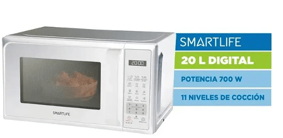 El horno microondas Smartlife MWO20MDW combina diseño moderno con funcionalidad en un compacto formato de 20 L, ideal para quien busca practicidad en la cocina. Su control digital ofrece 11 niveles de potencia, temporizador y múltiples funciones automáticas que facilitan el uso diario. La cavidad interior esmaltada y la bandeja giratoria de vidrio templado garantizan una distribución uniforme del calor y fácil limpieza, Además, cuenta con luz interior halógena, bloqueo para niños y distintas opciones de descongelamiento, suma comodidad y seguridad.