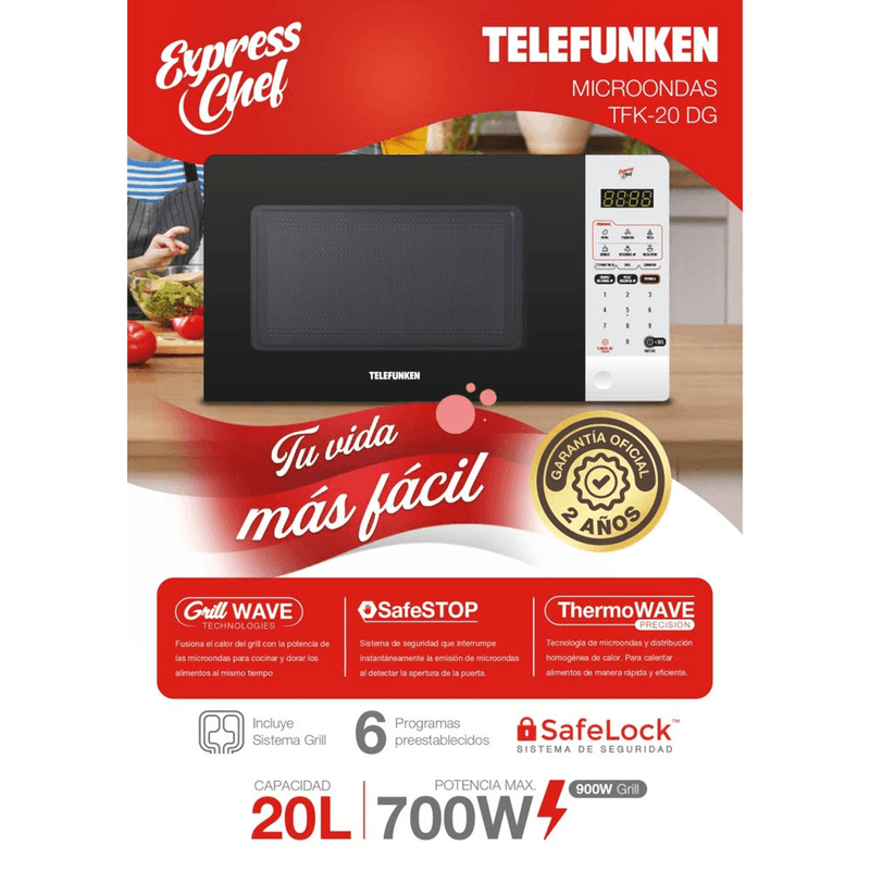Descubrí la combinación perfecta de diseño compacto y funcionalidad con el microondas Telefunken de 20 litros. Ideal para cualquier cocina, este electrodoméstico es el aliado perfecto para tus comidas diarias, brindándote rapidez y comodidad al alcance de tu mano.