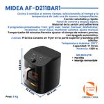 9 programas preseteados: Freír, grill, asar, tostar, hornear, deshidratar, recalentar, levar masa, mantener caliente, ajuste manual.