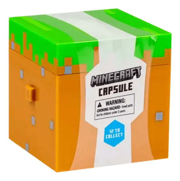 Cada cápsula contiene una figura coleccionable sorpresa inspirada en los personajes y criaturas del universo Minecraft.