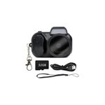 Incluye tarjeta de memoria de 32 GB para comenzar a grabar desde el primer uso, con soporte de almacenamiento de hasta 128 GB. Su batería recargable de 180 mAh ofrece una autonomía aproximada de hasta 30 minutos y se recarga fácilmente mediante puerto Micro-USB.