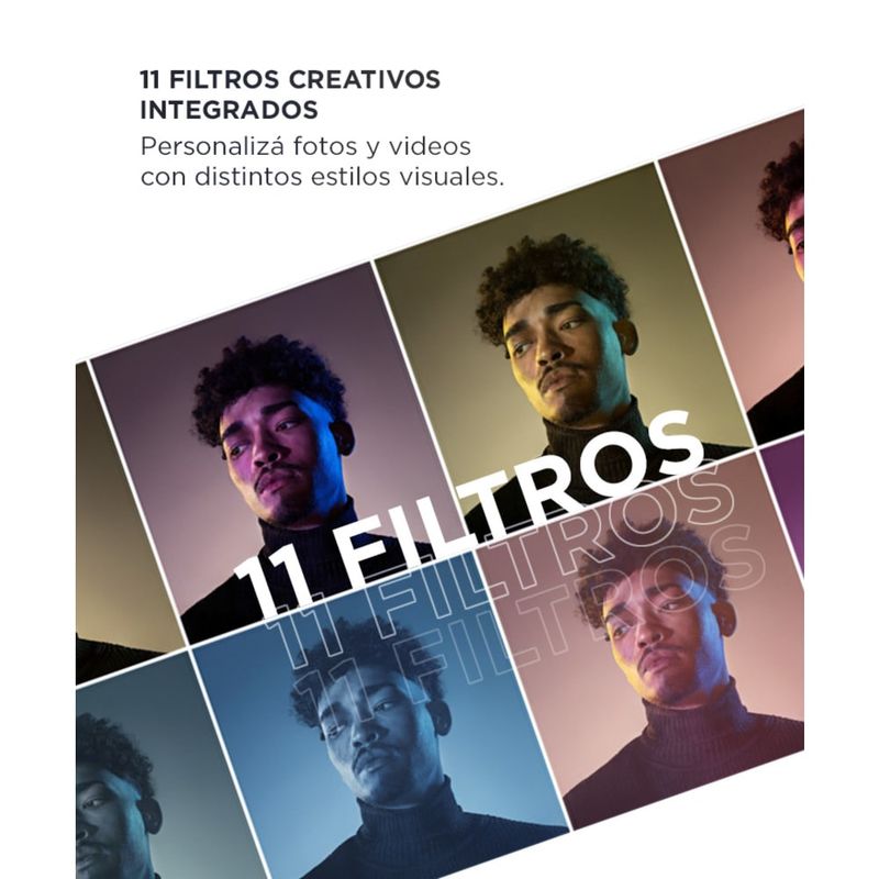 Incorpora 11 filtros integrados para personalizar fotos y videos, luz de relleno LED para mejorar la visibilidad en ambientes con poca iluminación y función de grabación en loop, ideal para capturas continuas sin interrupciones manuales.
