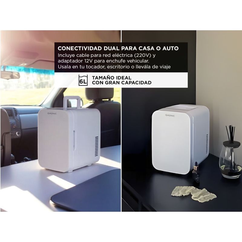 Incluye cable para red eléctrica (220V) y adaptador 12V para enchufe vehicular. Usala en tu tocador, escritorio o llevála de viaje: siempre lista para acompañarte.