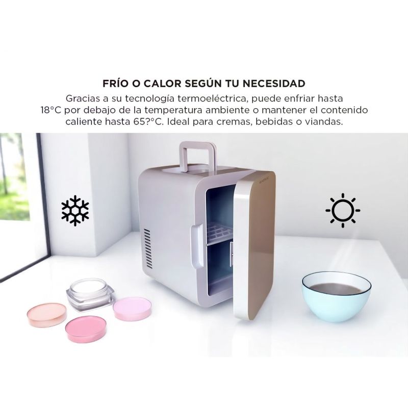 Gracias a su tecnología termoeléctrica, el modelo TJ06 puede enfriar hasta 18?°C por debajo de la temperatura ambiente o mantener el contenido caliente hasta 65?°C. Ideal para cremas, bebidas o viandas.