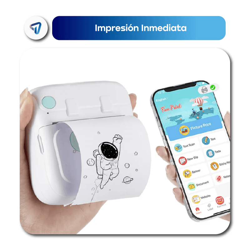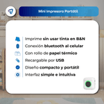 La mini impresora portátil WAGGS ITER03 imprime desde tu celular de forma rápida, compacta y sin tinta gracias a su tecnología térmica de 200 dpi. Permite generar fotos, etiquetas, stickers y notas en menos de 10 segundos, con opción de usar papel adhesivo para pegatinas personalizadas listas para pegar. Se conecta por Bluetooth BLE 4.0 a Android o iOS mediante la app Fun Print, incluye batería recargable de 1200 mAh con carga Type-C y pesa solo 160 g con diseño de bolsillo (8,2 × 8,5 × 4,5 cm). Viene con cable USB-C, rollo de muestra y manual. Una opción práctica y económica para imprimir en cualquier momento sin cartuchos, sin complicaciones y con estilo WAGGS.