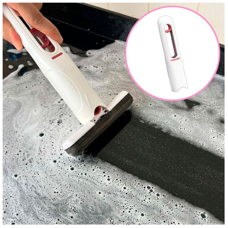 Modelo 9553: Mini limpiador compacto con esponja incluida y ojal para colgar. Ideal para limpiar pequeñas superficies de manera practica y rapida. El portaesponja se pliega dentro del cuerpo del cepillo, quedando escurrida y ocupando menos espacio.