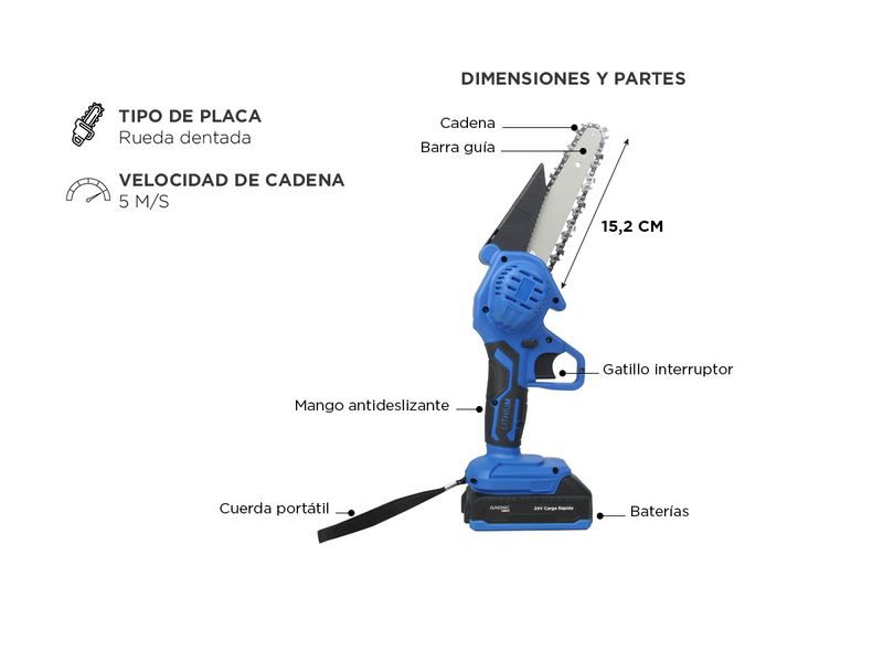 Descubre la revolucionaria Sierra Eléctrica con Cadenas Inalámbrica, la herramienta perfecta para tus proyectos de corte. Diseñada para brindarte la máxima comodidad y rendimiento, esta sierra te sorprenderá con sus características de vanguardia: