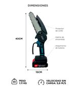 Cuenta con protector de corte y se entrega con dos baterías, dos cadenas y estuche rígido para transporte y guardado seguro.