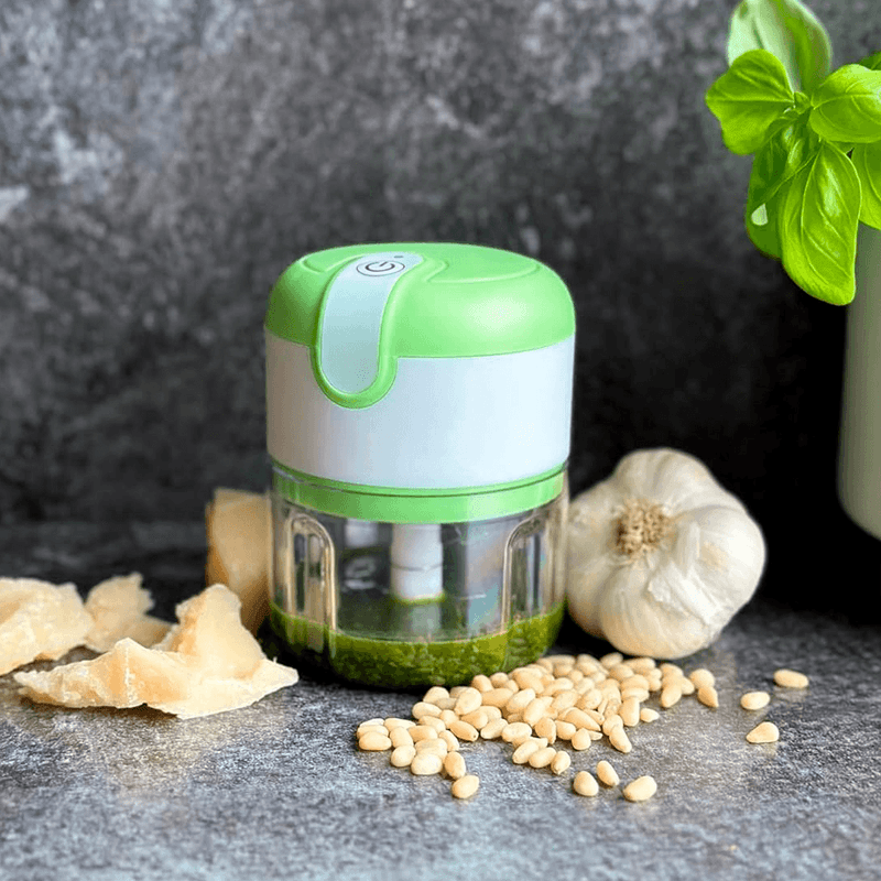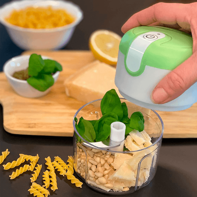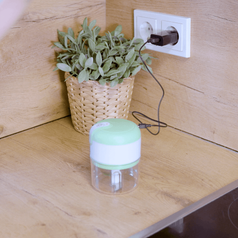 Su diseño compacto (no más grande que una taza de café) lo convierte en el aliado perfecto para el día a día, sin ocupar espacio en la cocina. Además, es inalámbrico y recargable por USB, por lo que podés usarlo en cualquier lugar y limpiarlo fácilmente: el contenedor y las cuchillas son aptos para lavavajillas.