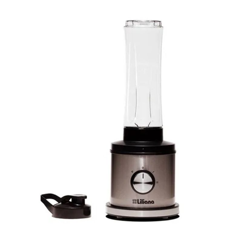 Licuadora de 1 litro con tapa hermética que permite añadir ingredientes sin detener el equipo.