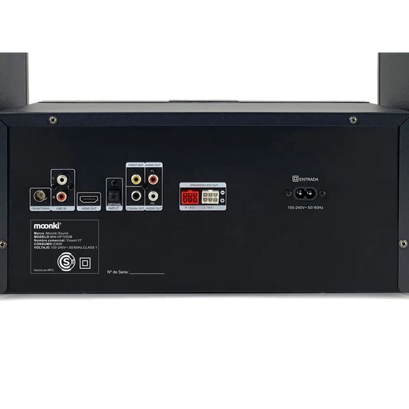 Conectividad: Aux 3,5mm, DVD/VCD/CD, HDMI, salida coaxial entrada óptica y de línea