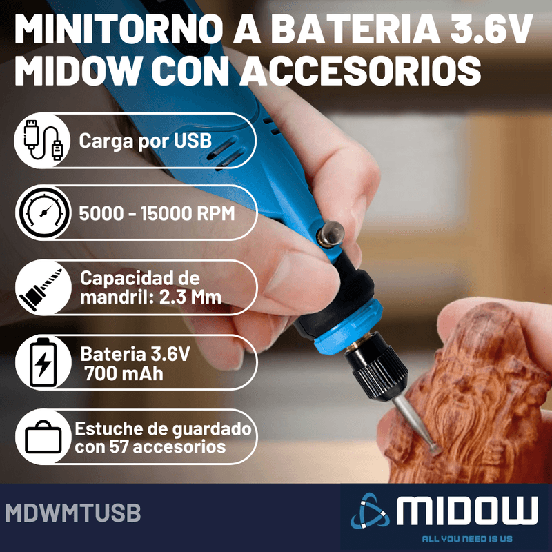 Ya sea que seas un aficionado o un profesional, el Minitorno USB inalámbrico Midow es la elección perfecta para llevar tus habilidades al siguiente nivel. Mejora tu experiencia de trabajo y disfruta de la libertad que ofrece esta herramienta en tus proyectos.