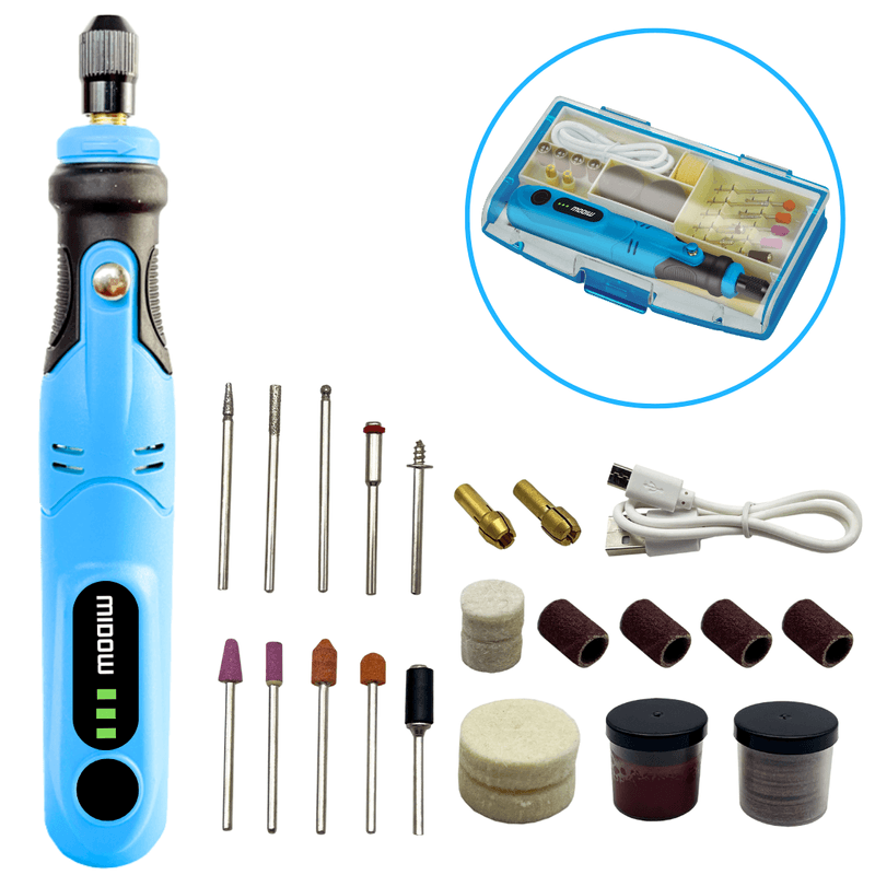 Este minitorno es ideal para quienes buscan una solución portátil y fácil de usar, permitiendo trabajar sin la molestia de cables. Con un total de 11 accesorios incluidos, podrás realizar diferentes tareas, desde pulido hasta tallado, adaptándose a tus proyectos más creativos.