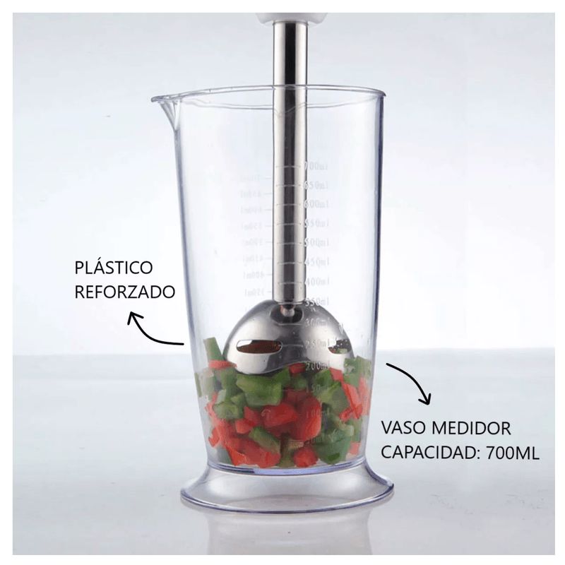 La minipimer DELHI es un producto muy versátil, que cuenta con un diseño moderno, muy práctico por su tamaño a la hora de usar y luego guardar. Cuenta con dos modalidades distintas de uso (mixer y batidor) y ademas un vaso que incluye medidor. Esto permite cocinar miles de recetas con un solo electrodoméstico. Es un aliado perfecto para tu cocina!