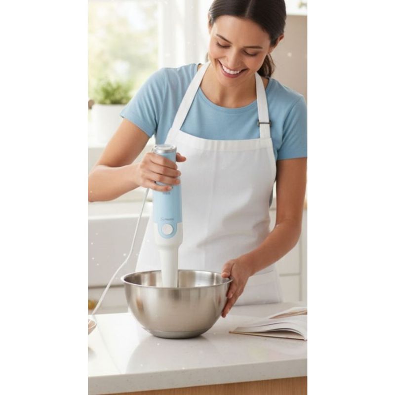 LICUADORA MANUAL MIXER HR2530/50 400W CE PHILIPS La nueva licuadora manual de uso diariocuenta con un poderoso motor y un diseño único y ergonómico que proporciona un licuado rápido y eficaz con solo tocar un botón, lo que lo ayuda a preparar sin esfuerzo comidas caseras saludables todos los días -Potencia 400 W -Tecnología ProMix: Forma triangular para crear un flujo óptimo y lograr máxima performance -1 velocidad + función turbo para potencia extra -Varilla plástica -Color Azul perla -Modelo HR2530/50 -Garantía fabricante 24 meses -Origen China