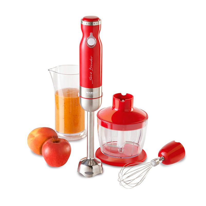 PE-LM327R C/HOLDER MIXER 800W ROJO PEABODY Mixer. Modelo PE-LM327R C/HOLDER. 800W de Potencia. Pie Desmontable de Acero Inoxidable. Variador Electrónico de Potencia. Exclusivo Sistema de Guardado. Silencioso Motor. Accesorios: Vaso Picador 500cm3, Batidor, Vaso Medidor 800ml con Tapa. Color Rojo.