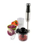 Accesorios Multifuncionales Incluye un vaso medidor de 700 ml con tapa para procesar pequeñas cantidades de alimentos, un recipiente picador de 500 ml para carne, hierbas o frutos secos, y un batidor de alambre perfecto para mezclar y batir ingredientes rápidamente.