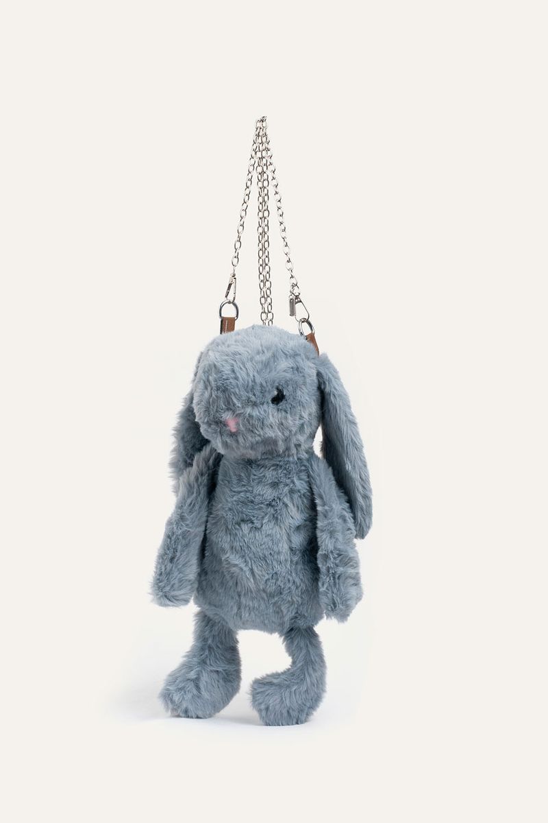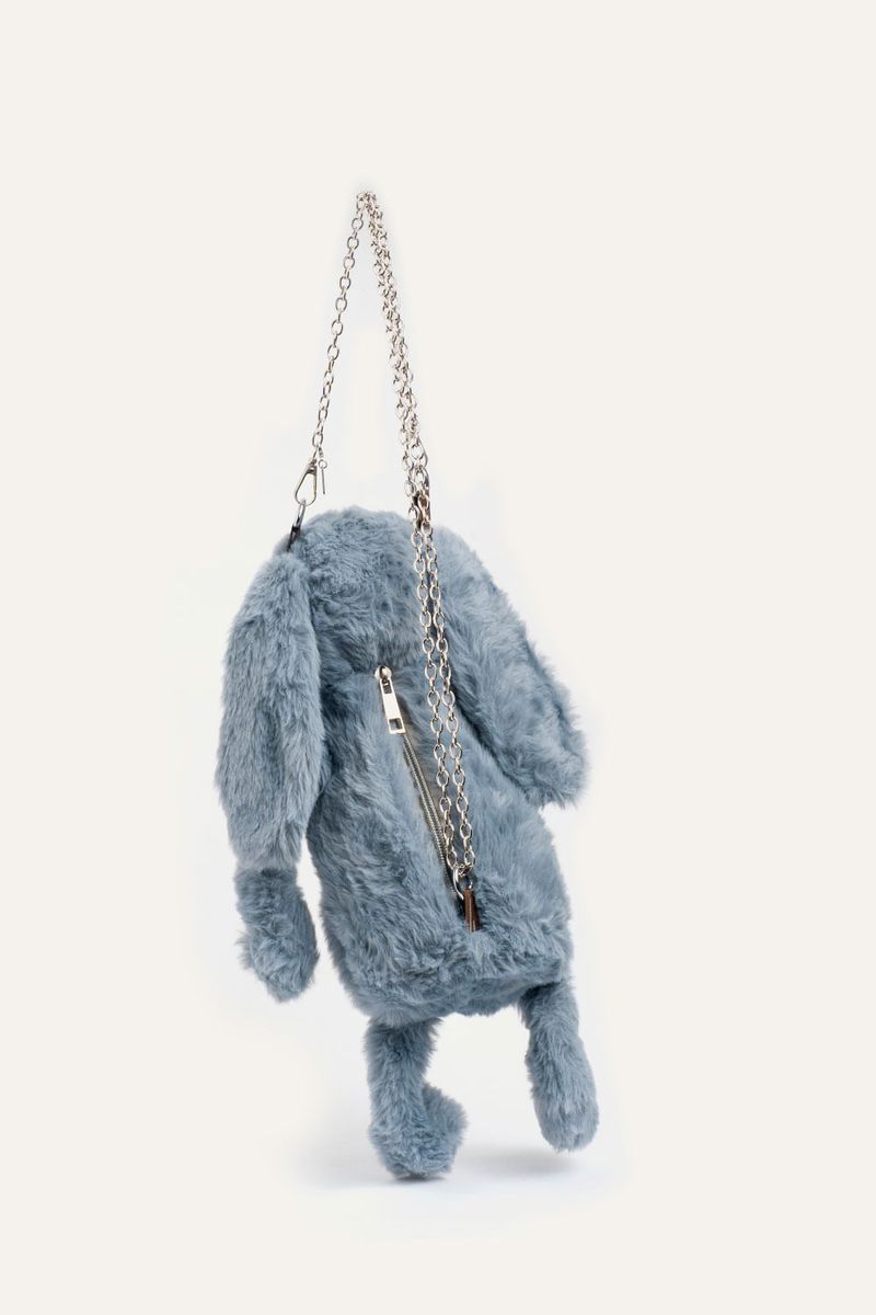 Mochila mini confeccionada en piel sintética con forma de conejo, de textura suave tipo peluche. Cuenta con cadena metálica desmontable y cierre metálico superior. Un accesorio original y divertido que podés combinar con el llavero Fluffy Bear o con un total look casual para sumar un toque distinto.
