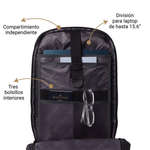Mochila versátil de 23 litros con doble compartimento, incluyendo espacio para notebook y bolsillo térmico para bebidas. Material impermeable y diseño ergonómico para uso diario, trabajo y estudio.