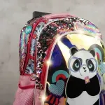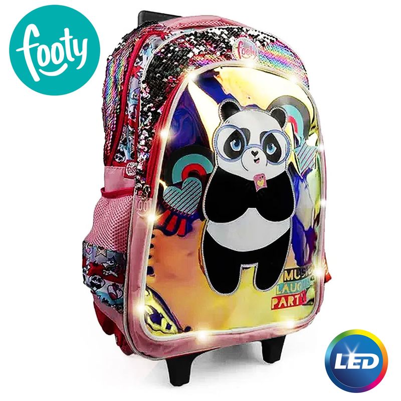MOCHILA CARRO 18p PANDA MUSIC CON LUZ LED Y LENTEJUELAS REVERSIBLES