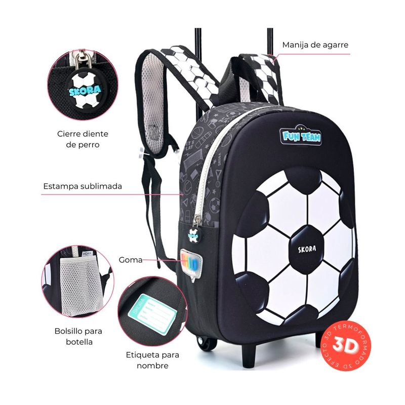 •Diseño termoformado 3D: Con una impactante pelota de fútbol en relieve que captura miradas y hace de esta mochila una pieza única.