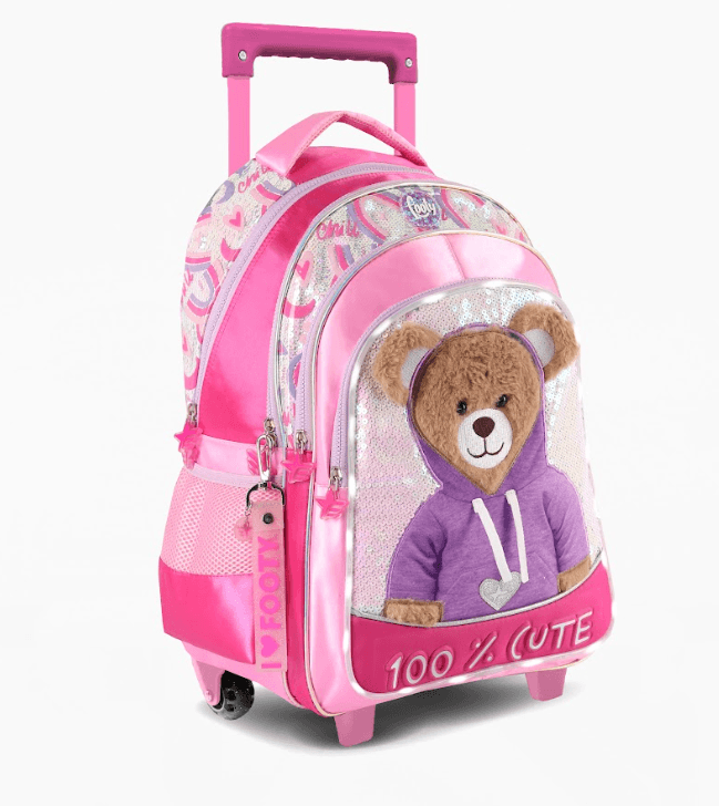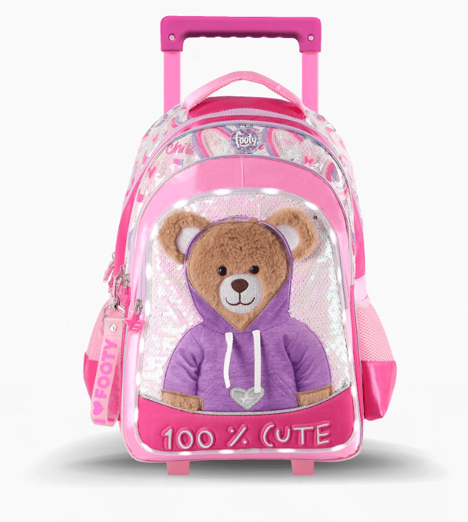 Mochila Carro Footy Teddy 18” con Luz Led Rosa