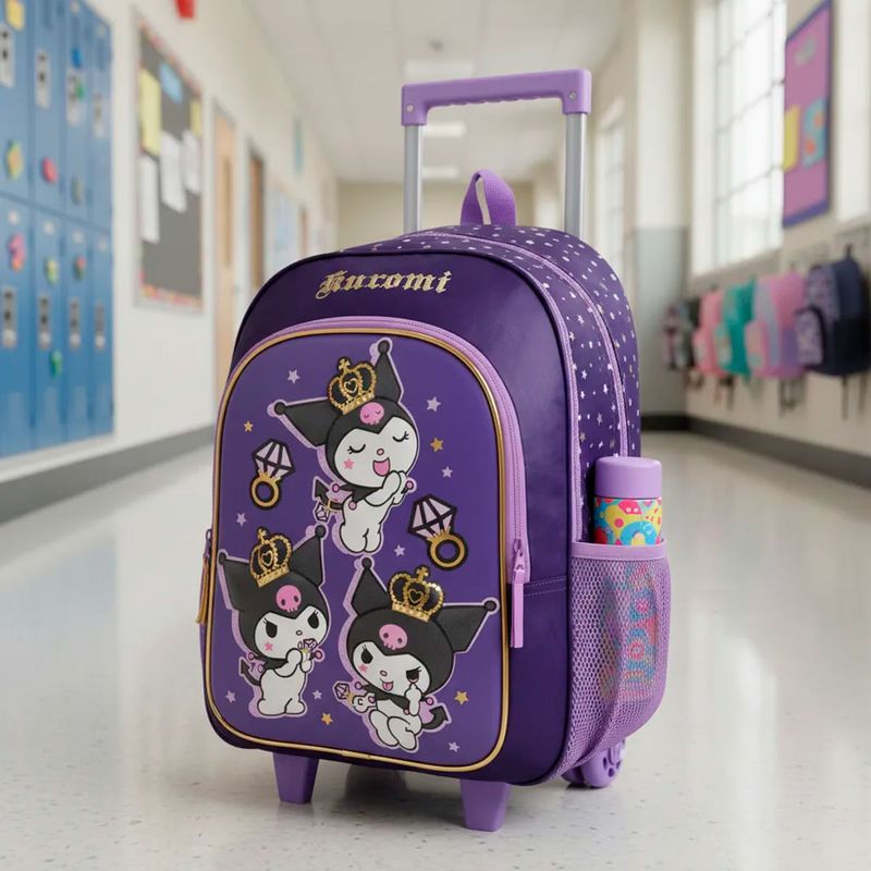 Mochila Con Carrito 17 Pulgadas Kuromi Diamantes 3D