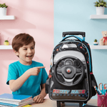 Una mochila resistente y funcional, perfecta para llevar todo al cole con estilo automotriz.