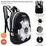 ¡La mochila ideal para los pequeños fanáticos del fútbol! Esta mochila Petit de 12 pulgadas (22x30x10cm) presenta un llamativo diseño termoformado en 3D que le da un relieve divertido y protector. Lo más emocionante es que incorpora luces para mayor diversión y visibilidad. Es perfecta para jardín de infantes o los primeros años escolares, permitiendo a los niños llevar sus juguetes y merienda con el espíritu de su deporte favorito.