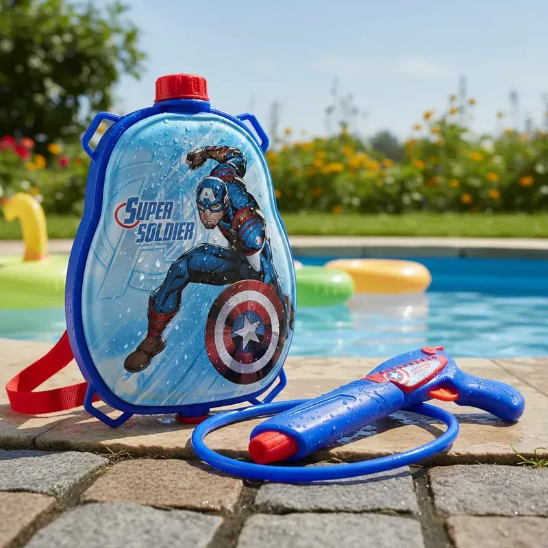 -Diseño atractivo: La mochila y la pistola presentan los emblemáticos colores y gráficos del Capitán América, atrayendo a todos los pequeños fans del superhéroe.