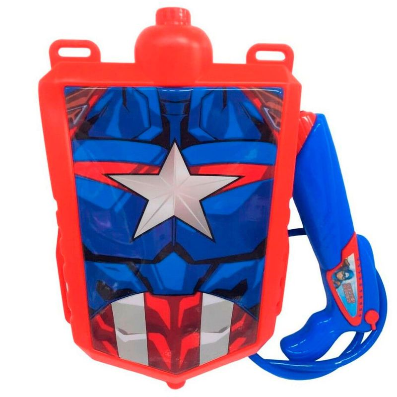 Esta mochila de agua con pistola de Capitán América permite vivir aventuras refrescantes. Cuenta con sistema de bombeo para disparar agua y correas ajustables para mayor comodidad. Características: