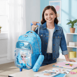Frozen Elsa Ice Magic es la mochila ideal para acompañar a las más pequeñas en sus días de escuela con estilo, brillo y comodidad. Incluye cartuchera a juego para mantener los útiles siempre organizados.