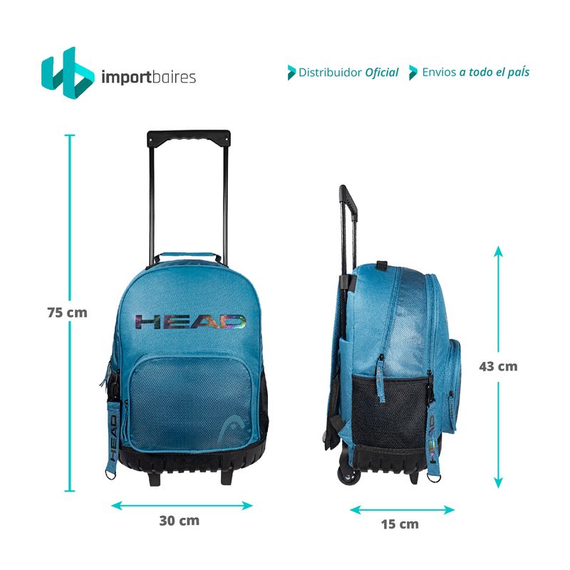 NUEVAS MOCHILAS HEAD ESCOLARES CON CARRITO 18" PULGADAS