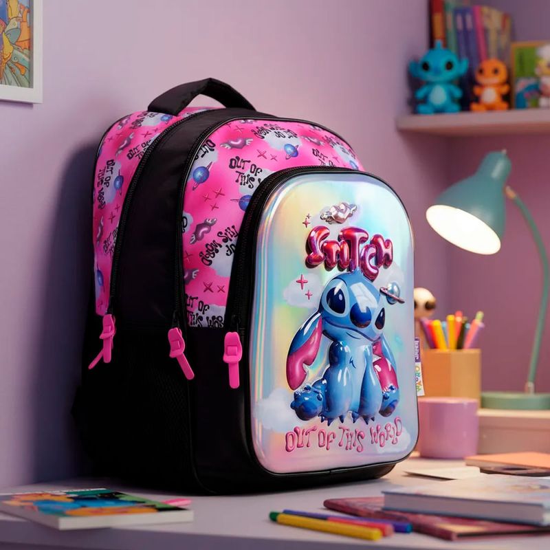 Una mochila cómoda y llamativa, perfecta para acompañar la jornada escolar con el estilo único de Stitch.