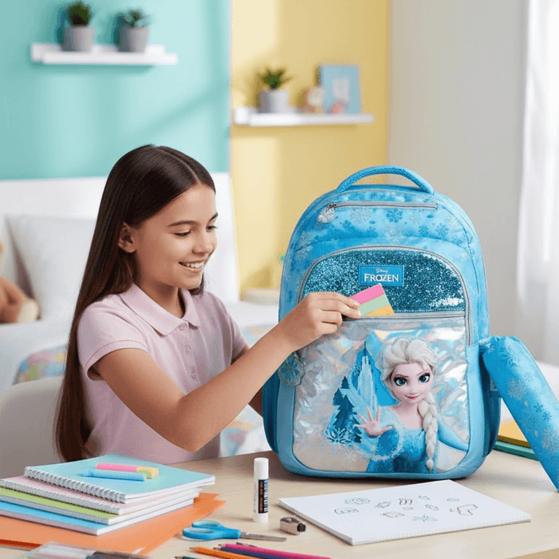 Mochila escolar Disney Frozen Ice, ideal para acompañar a las niñas en el cole con todo el estilo de Elsa y Anna. Amplia, cómoda y resistente para el uso diario.