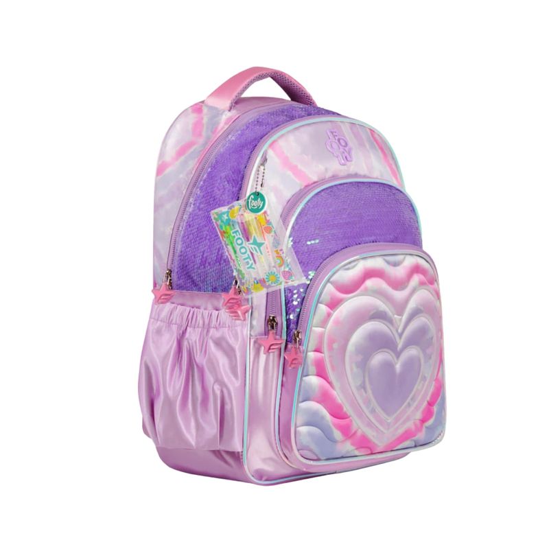 Mochila De Espalda 18 Pulgadas Footy Con Corazon Lila
