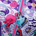 - Frente holográfico con reflejos iridiscentes y estampa Music Life.