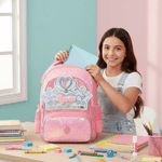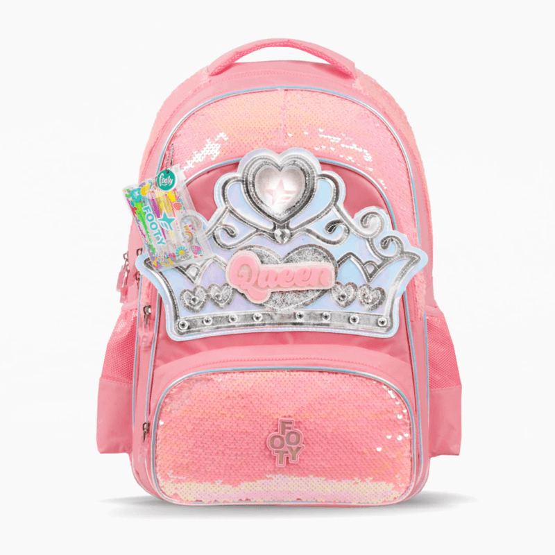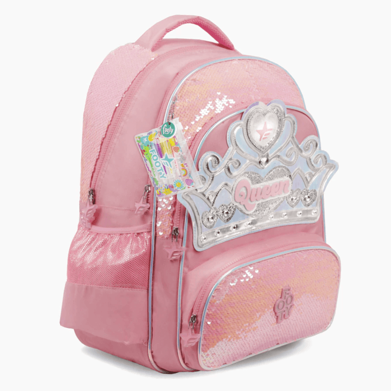 La Mochila 18" Corona con Luz LED combina diseño mágico, gran capacidad y detalles premium. Su frente holográfico con glitter, lentejuelas reversibles y una corona iluminada la convierten en una opción ideal para quienes buscan estilo y funcionalidad en una sola mochila.