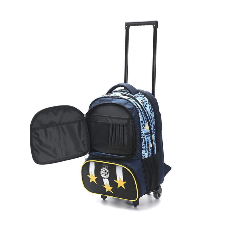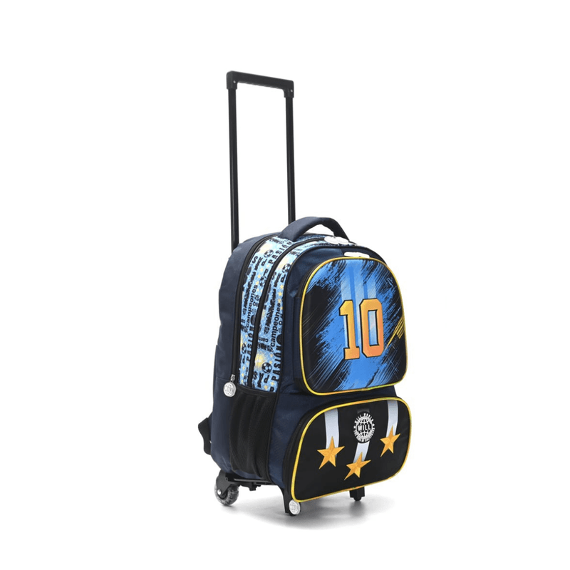 ¡Llevá la pasión por la selección a todos lados con la Mochila con Carrito Will Kids Argentina Jugador 10! Esta mochila de 18 pulgadas está diseñada para los pequeños campeones que quieren combinar su amor por el fútbol con la máxima funcionalidad escolar. Su estética dinámica en color negro destaca por sus detalles de alto impacto y las emblemáticas estrellas bordadas que representan el espíritu ganador.