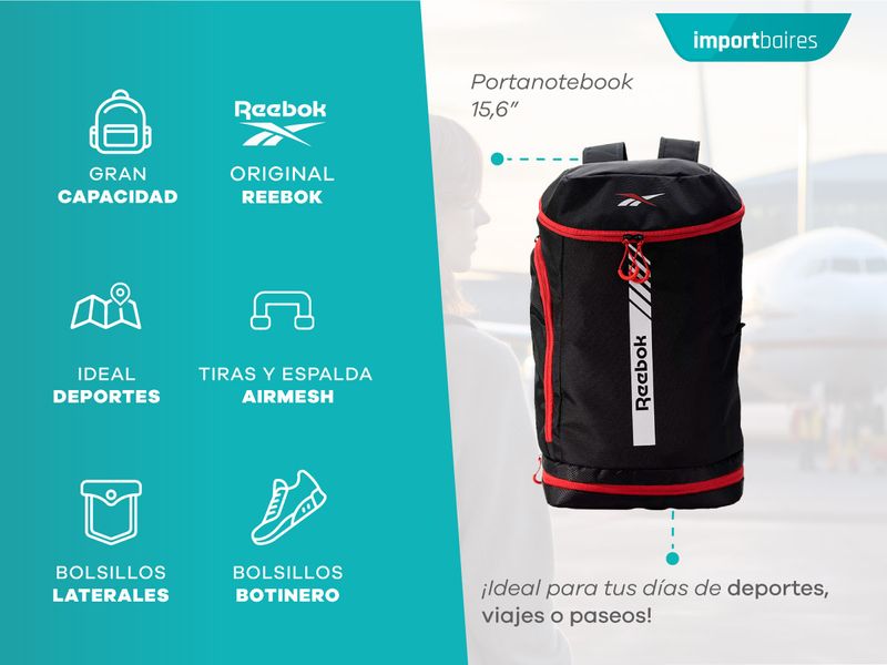 MOCHILA DEPORTIVA REEBOK HOMBRE MUJER REFORZADA ACOLCHADA