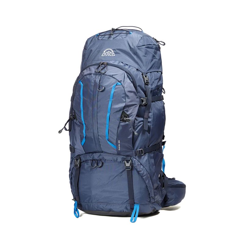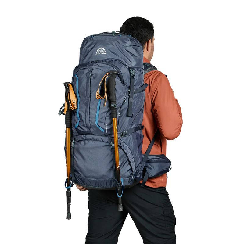 Cuenta con detalles técnicos indispensables como salidas para hidratación, porta piolet o bastón, correas de compresión y un cinturón lumbar desmontable diseñado para optimizar la distribución del peso en terrenos complejos. Incluye cubre mochila para protección total contra la lluvia.