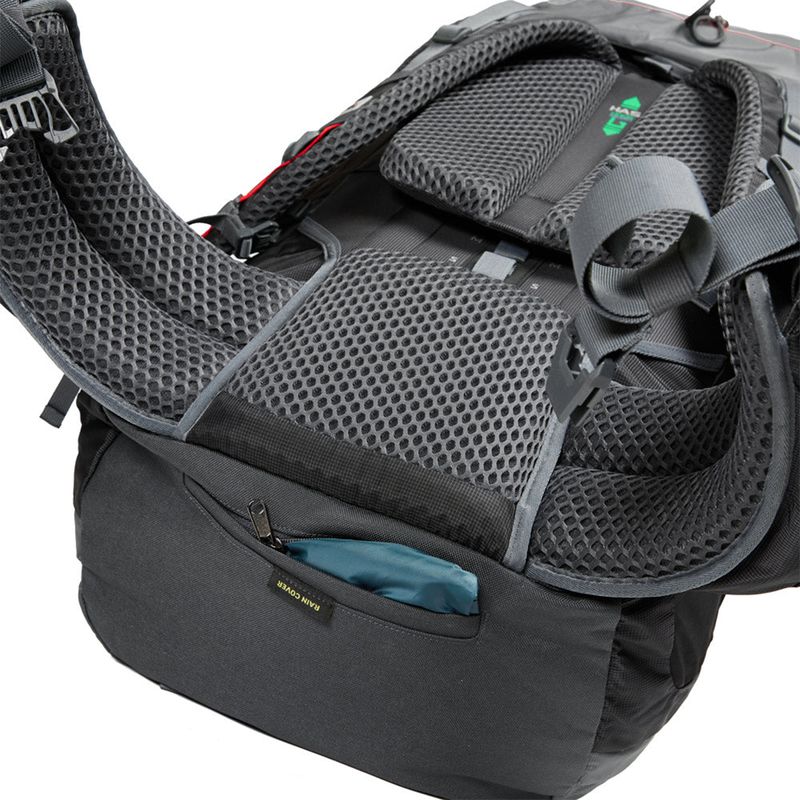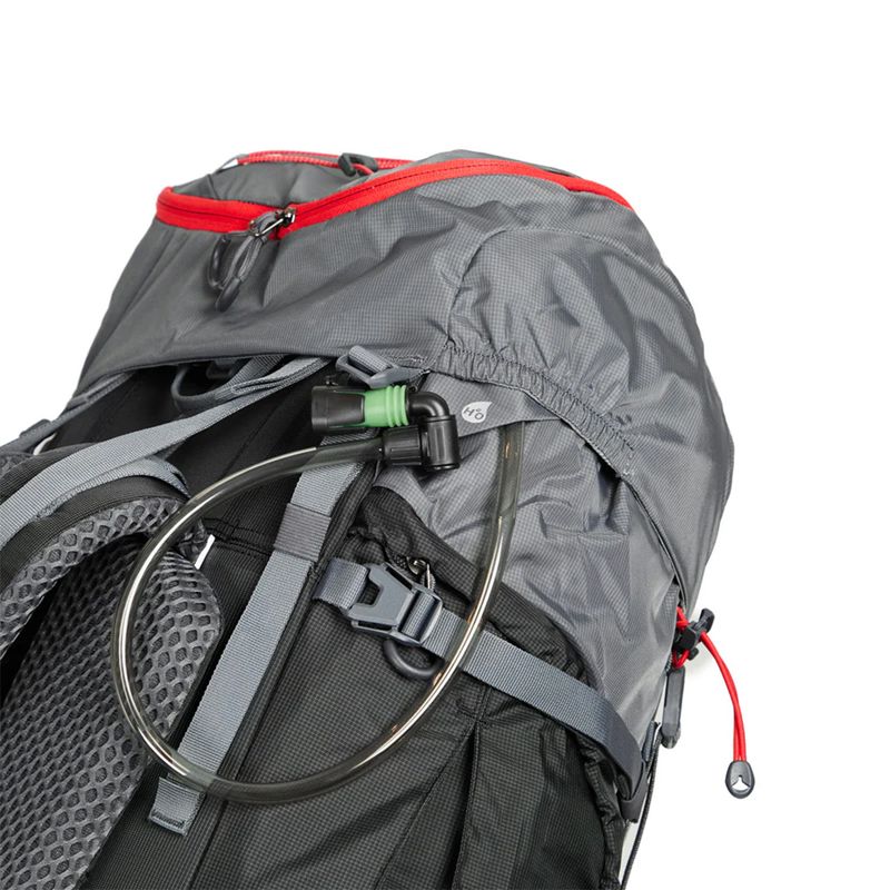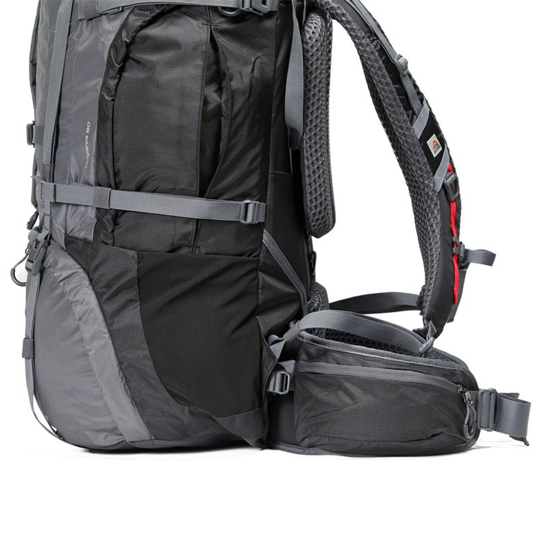 Cuenta con un amplio compartimento principal de 80 litros, complementado por multiples bolsillos con cierre para una organizacion optima. Incluye accesorios criticos como cubre mochila impermeable, cinturon lumbar desmontable y cinturon pectoral para maxima estabilidad. Está preparada para la aventura con porta piolet o baston, correas de compresion laterales y un sistema de hidratacion con doble salida para manguera.