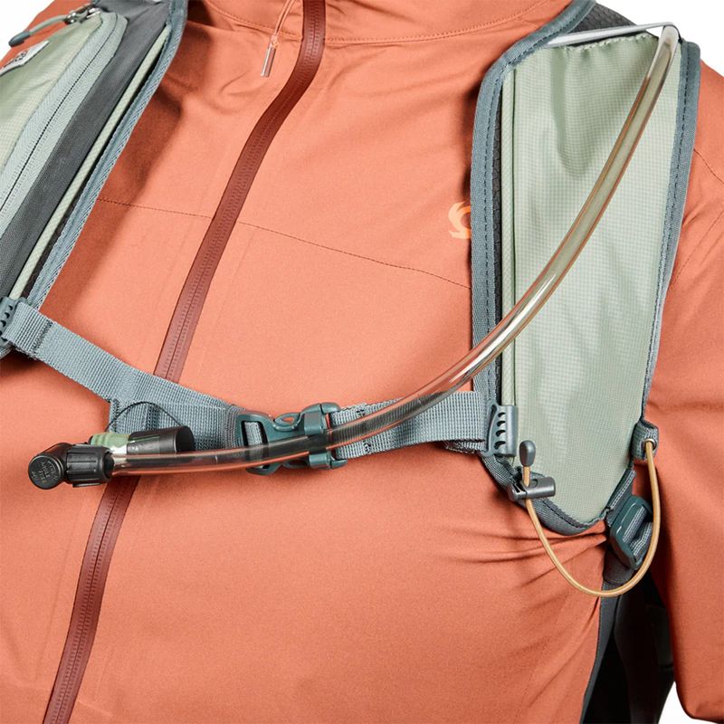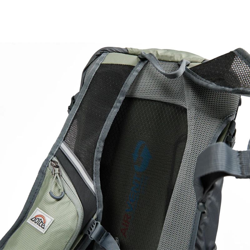 Incluye cinturón de ajuste lumbar, cinturón de ajuste pectoral, hebilla con soporte para manguera de hidratación en la correa del pecho, 2 Salidas para manguera de bolsa de hidratación, correas de compresión laterales, porta Piolet-bastón, reflectante de seguridad en la parte frontal y en correas de hombro.