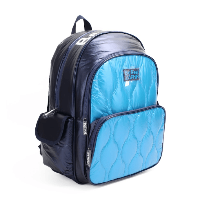 Mochila de 18" de espalda con el frente matelaseado y estampa Be Real. Medidas aproximadas: 43 x 30 x 18cm Marca: Zaphir.