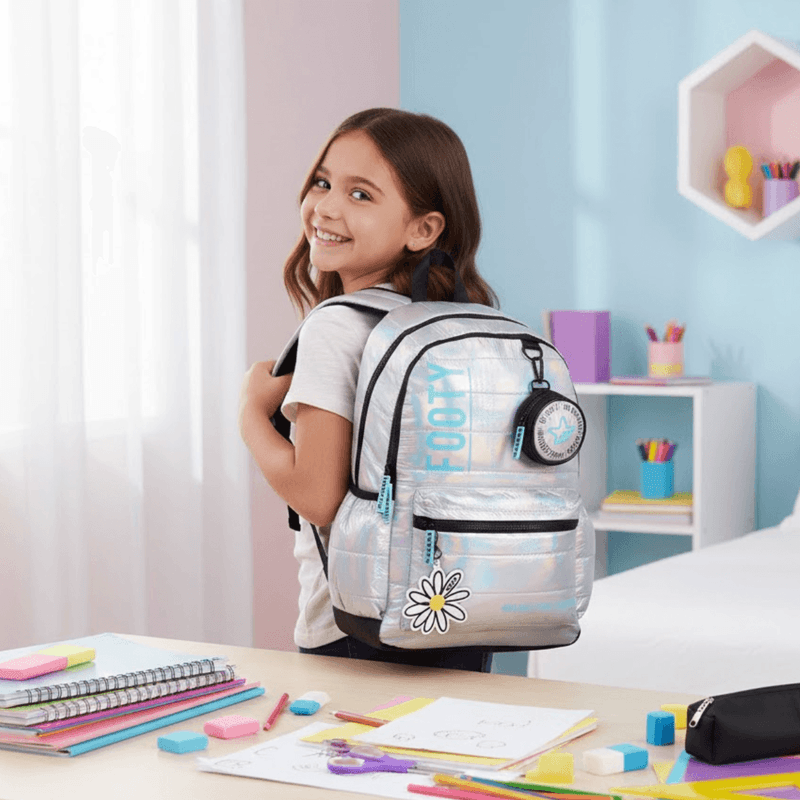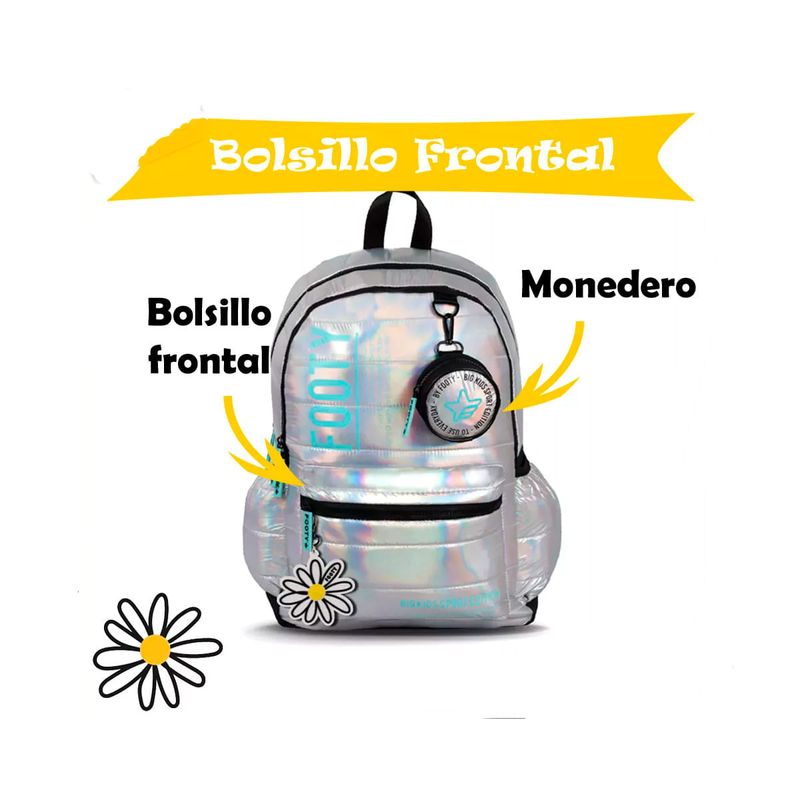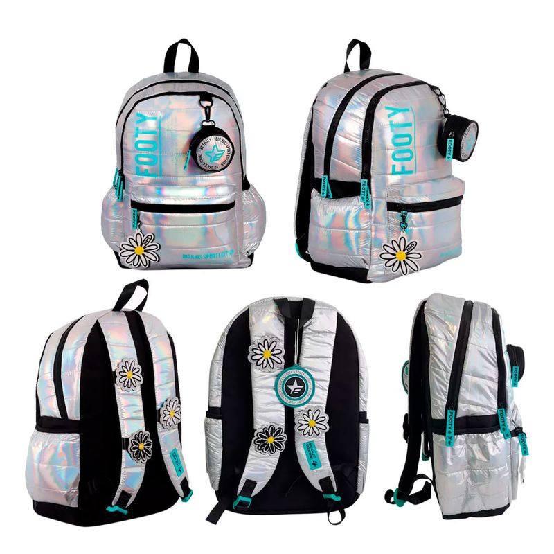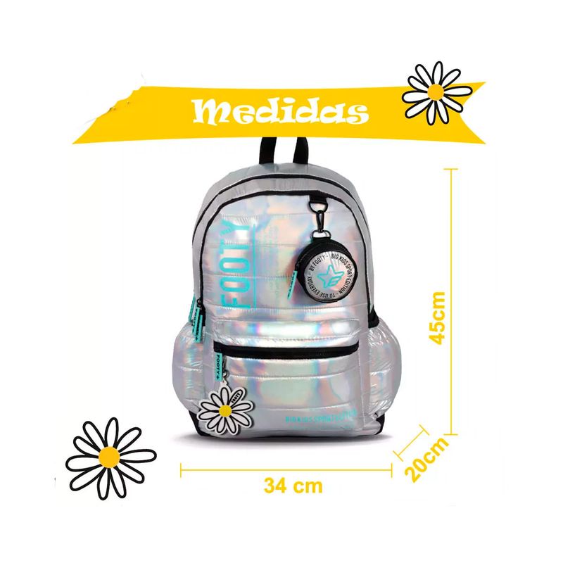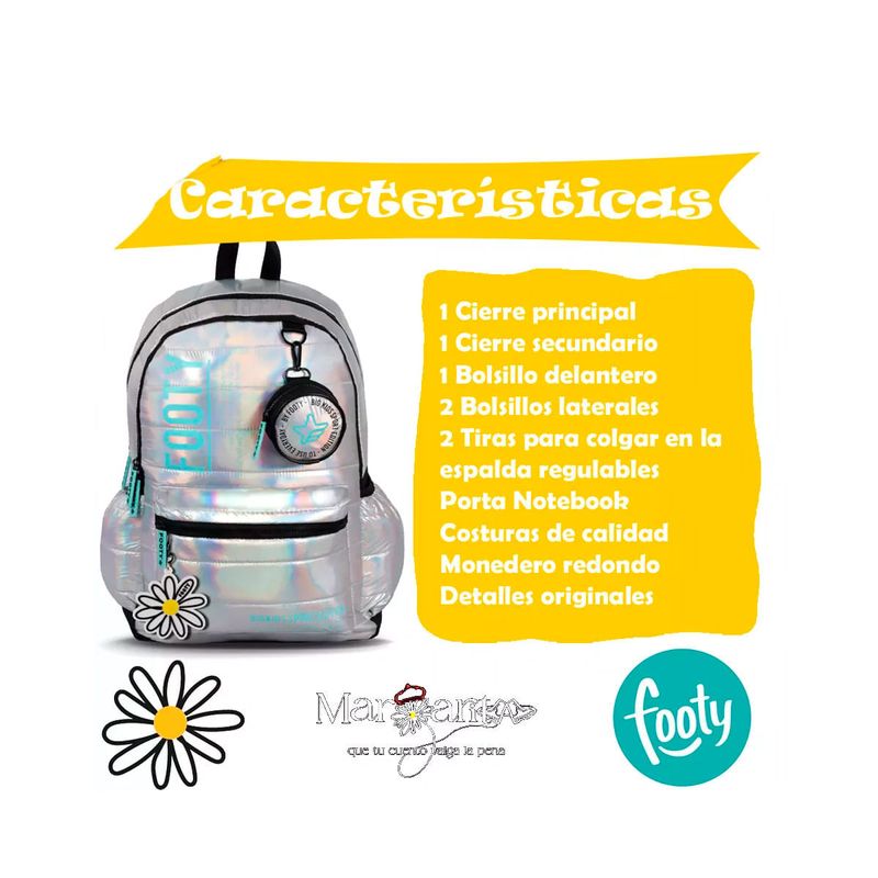 ¡Aporta brillo y estilo a tu día con la Mochila Espalda 18 Footy Big Kids Margarita en color plata! Diseñada para destacar, combina funcionalidad, elegancia y detalles únicos que la hacen perfecta para quienes buscan practicidad y diseño moderno.
