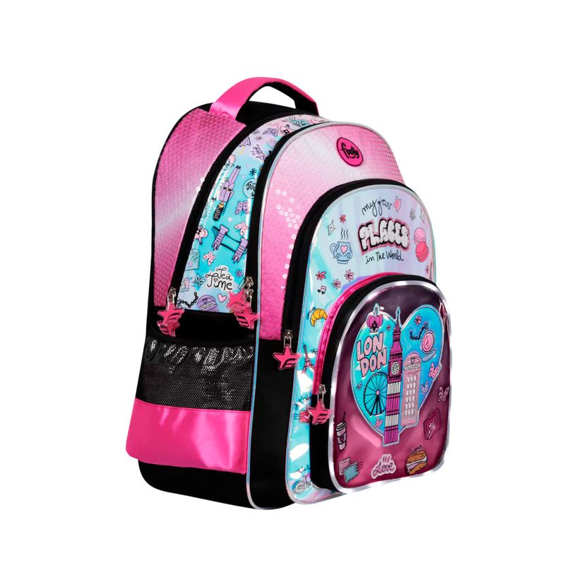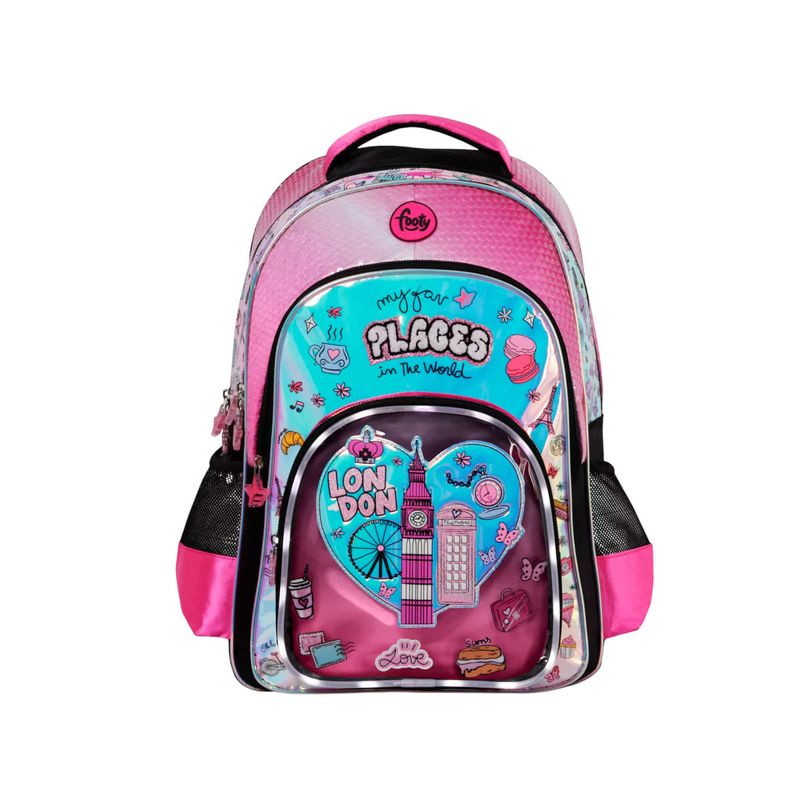 La mochila Footy I Love London combina estilo moderno con materiales brillantes y luces LED. Su diseño con glitter, lentejuelas y detalles holográficos la hace única, ideal para destacar en cualquier ocasión.